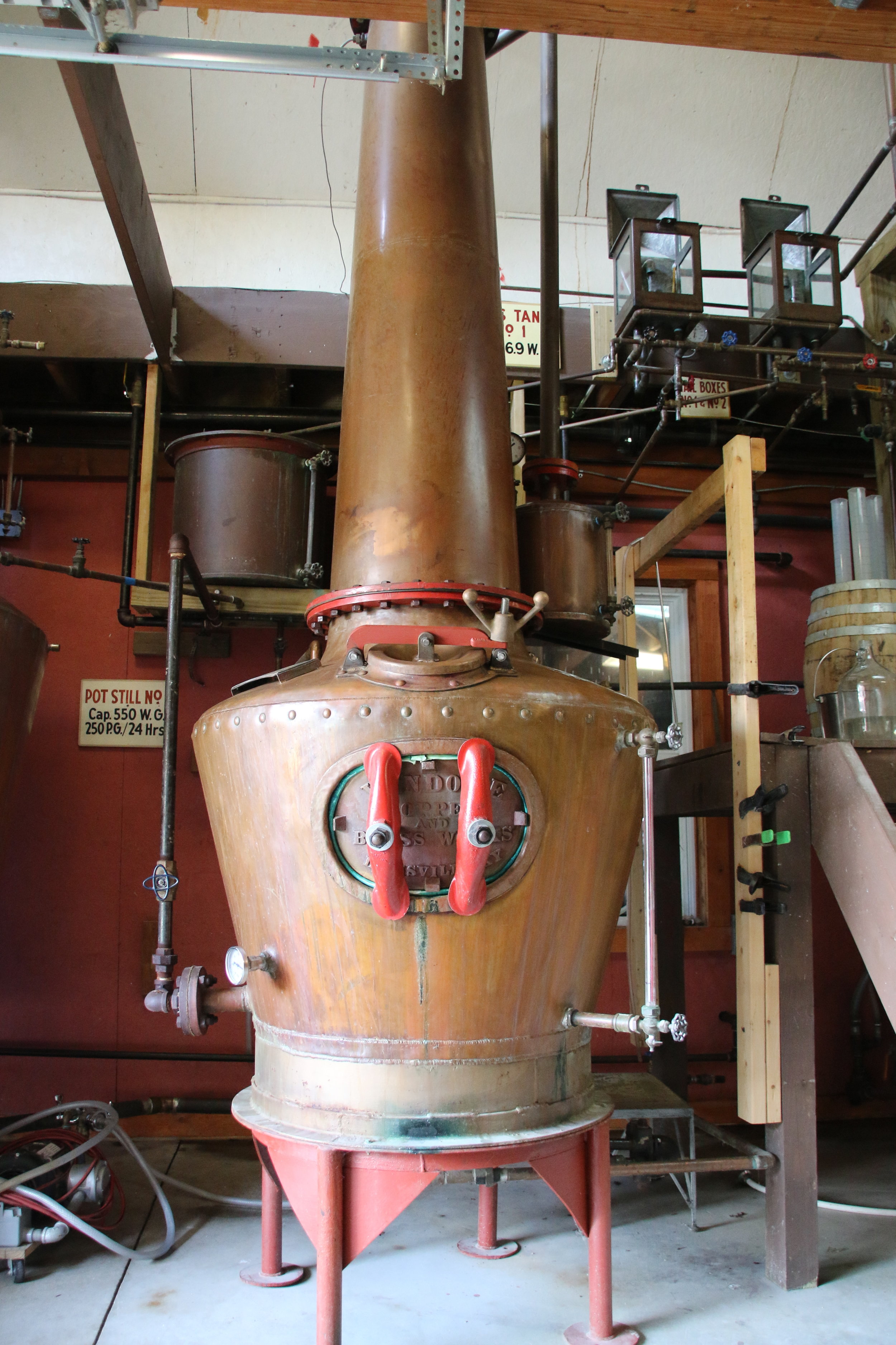 The First Distillation reduces 1,000 gallons of distillers beer to 240 gallons of rich, creamy “low wine.” Our Beer Still holds over 1,200 gallons, making it the largest pot still in Ohio. Typically, we fill it with 1,000 gallons of distillers beer plus 100 gallons of tails, leaving plenty of headspace, which reduces boil-overs.